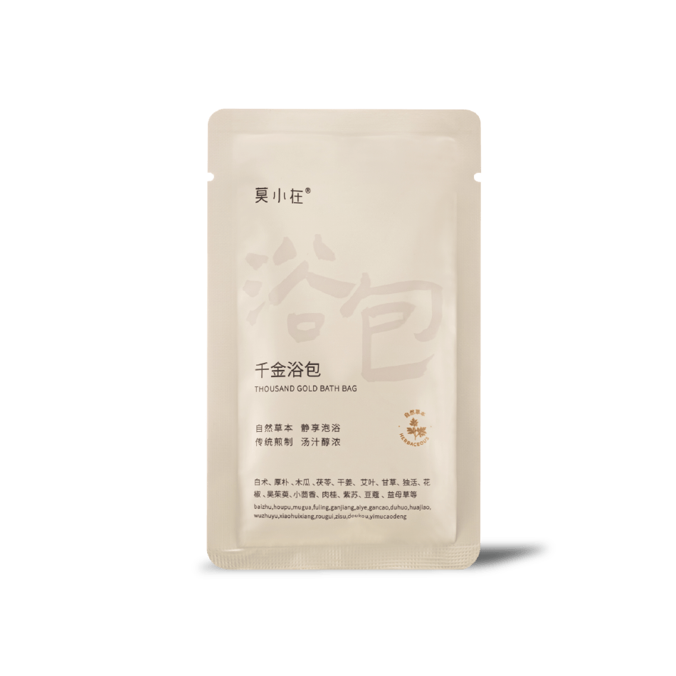 东方呵养讲求身体与心绪和畅,贵在周流不息,千金浴包以此为源,融汇自然草木之力。采撷艾叶、干姜为核心,带来温和暖意;辅以花椒、吴茱萸,助益通达之感;佐以白术、茯苓,协同平衡之效;更添肉桂、益母草,调和状态。 借暖融浴汤之力,草本精粹随氤氲水汽,由肌肤沁内。暖流自足底缓缓向上蔓延,仿佛循自然之径,助益周身顺畅之感。一浴方罢,旨在让寒凉滞重感悄然散去,身体如释重负,焕发松软轻盈之态。